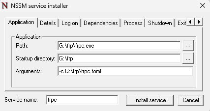 可以运用NSSM,把frpc安装成服务,这样windows启动时就会自己启动了