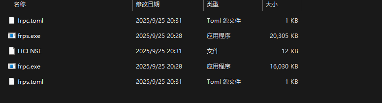 首先删掉 frps 开头文件文件,然后再进行配置,编辑 frpc.toml