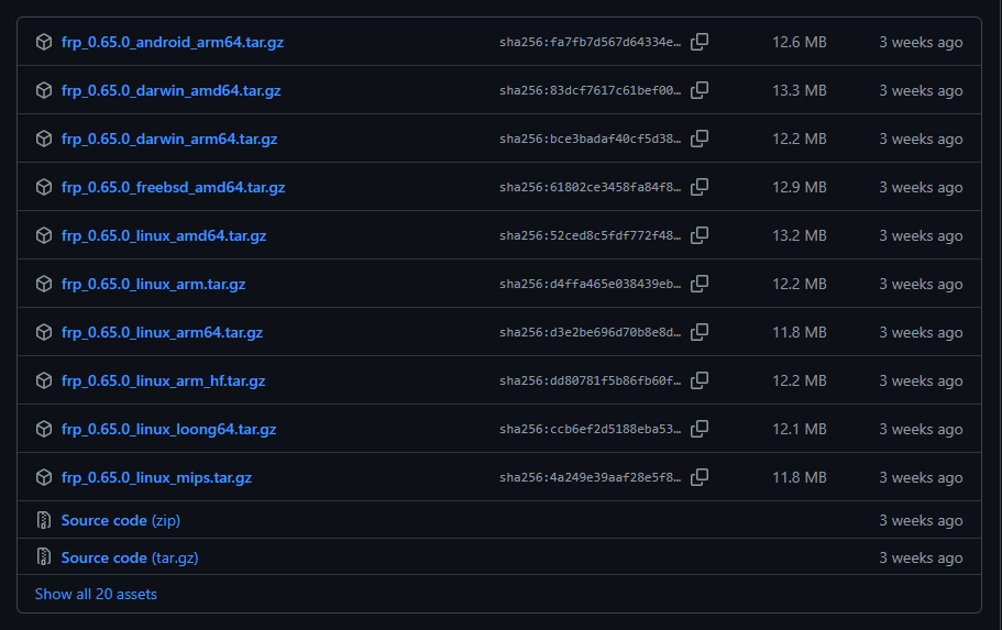 找到第一条,然后下载frp_windwos_amd64.zip这个(amd64是64系统,386是32位系统)